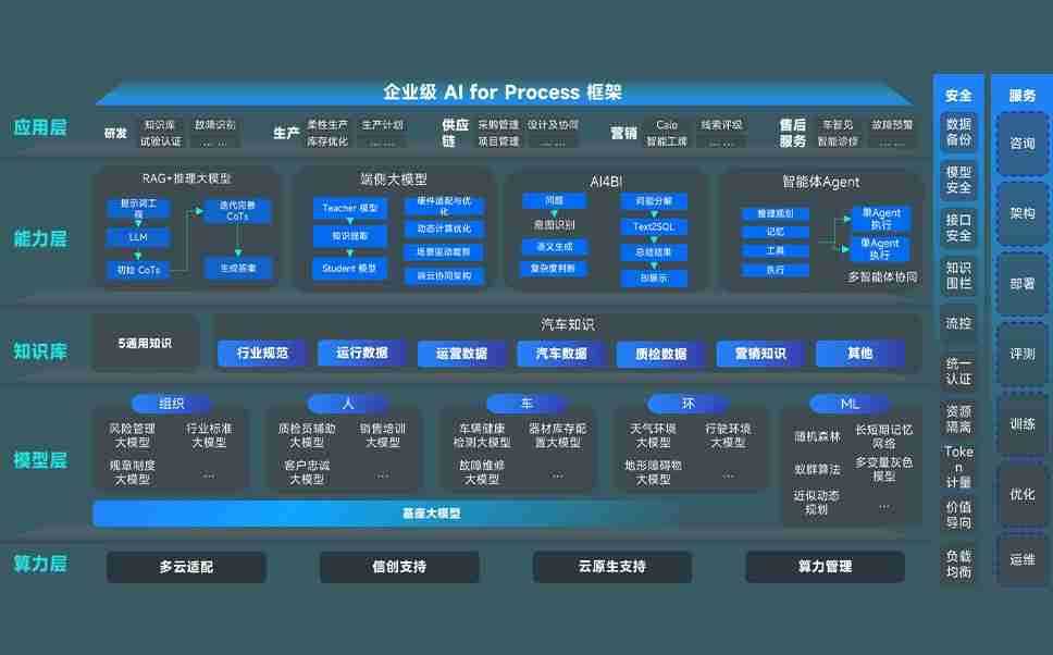 端到端的一站式AI工作空间深度融合了从企业战略规划到日常经营的全流程业务板块,,定向解决车企内部领域多、、、部门多、、、、链条长、、、、场景碎片化等难题,,,,支持车企快速构建以AI为核心的生产力写作体系,,,,实现任务执行与AI能力的无缝集成与交互